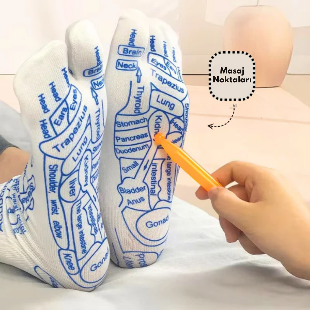 Çorapların üzerine basılı, takip etmesi kolay diyagramlar sayesinde masajı doğru noktalara uygulamak çok kolay.